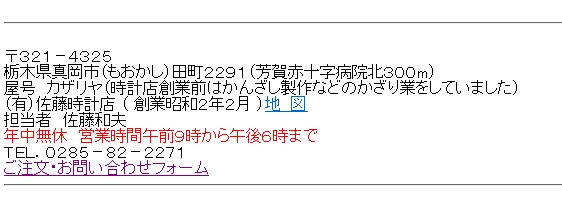 〒321-4325 栃木県真岡市田町2291 佐藤時計店 まで