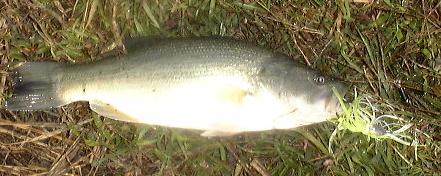 話を聞いてみると、その人も今日始めて来たらしい。何も情報を得られずにその場を立ち去る。 しかしバイトが無い・・・太陽も出て来てイヤに暑い・・・フローターの人が気持ち良さげで羨ましい。そろそろ帰ろうかな・・・思いながら歩いていると、朝話しかけた人が居ない。場所が空いていたので入らせてもらう。 スピナベを投げているといきなりガンガン!とあたる。しかしとてもフッキングまでには至らない。すかさず再キャスト!同じ場所で又バイト!今度は抜かり無くあわせる。結構引く! 計ってみると36cmだった。満足満足!少しキャストしてから車に戻る。 とうとうY2Kさんは来なかった。何か有ったのかな?と思いながらこれから何所に行くか考える。 茨城の県民の日だし、茨城の有名な池は人で溢れ返っているだろう。 で、ふとあの池を思い出す。真壁の野池ならあまり知られていないだろう!と考え、早速行ってみる。 流石秘境!?誰も居ない! 早速池に近付くと、デカイバスが小魚を追いかけていた。直ぐにスピナベをキャスト!バイト〜!重い!と思った瞬間、ばらしてしまう。勿体無いナー。その後も結構デカイのが掛るが(多分30クラス)見事にバラシまくり。狙ってもいないチビバスがガンガン当たってくる。デカイワームに食って来た3匹を最後に帰宅した。 |