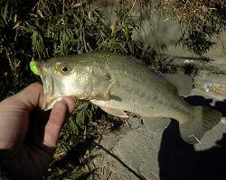 (はじめに) ついに21世紀がやって来た!コンピューターやロボットが当たり前の世界到来(だよね?) そんな中、ブラックバスを釣ると言う 何とも原始的 かつアナログな世界が21世紀に通用するのか?そんな疑問が私の中で交錯する・・・ なんてね(^^) 難しい話は専門家に任せましょう(^^;) 1、2001年 霞の旅 新年あけましておめでとう。今年もよろしくね!>バス君 ふと気が付くと 1月5日になっていた。 釣り初めしたい・・・ そんな言葉が頭の中にあった。 しかし、今は外出中。直ぐには行けないなぁ・・・ で、夜中の2時30分、用事が終わり、帰宅の準備をしながら考えた。「今から霞に行くか!」 2、暴風警報発令! 霞に着いたのは 夜中の3時30分・・・真っ暗じゃん。お星様が綺麗じゃ(^^) 霞ヶ浦の水面を見ると・・・波がぁ!しかも風が強い!したがって 寒い〜〜〜〜〜 風、波、寒いの3大要素満載の霞ヶ浦・・・ 早速帰りたくなる(笑) 来たからには釣るぞ!と思い直し、昨年末に買った リバレイの雨合羽を着込み、護岸に降り立つ! 降りた時、何故か足元で ジャリッ という音がした。 足元をよく見ると、波で打ち上がった水が凍りつき、シャーベット状態になっていたのだ。 酷い所では完全に凍っている・・・ 滑って怖い。 足元に気を付けながら 護岸沿いをゆっくり攻める!しかし 風で思うように上手く出来ない。 しかも寒さ爆発!10分で車に非難(^^;)帰ろうかなぁ・・・ それにもめげずに頑張る。色々と周るが、風表なので 全然釣りにならない。 思い切って大きく移動。風裏じゃ! で、着いたのが 私の苦手なポイント・・・ 釣れるのだろうか・・・ ここでも頑張るが、全く駄目。 眠気も手伝い、釣り中止。5時に就寝。お休みなさい(^^) 起きたのは7時30分。暖房で喉が痛い。風も夜中同様、吹き荒れていた。 頑張る!頑張る!頑張る〜〜〜! が駄目。 10時頃、霞を後にした。 3、怒涛の野池 帰り道、YSKさんのホームレイクに行ってみる。YSKさんいるかな? 残念ながら YSKさんはいなかった。 下の池は暴風で釣りにならない。じゃ上池だ!!! 先客2人を避け、奥のポイントに着く。風裏だが寒い。まぁいいや。釣ってやる〜(^^) 開始数分後、コツンとバイト!速攻あわせるが 軽かった・・・もっと食わせなければ! 頑張っていると、いきなり携帯電話が鳴り響いた!ビックリ(@@) メールが入ったらしい。キャストしたままメールを読む。Bazzさんからだ〜(^^) 釣れた?ってな内容。早速返事を書く。(釣れないって) で、さっき投げておいたワームをゆっくり引いてくる。すると目の前でコツン とバイト。 今度は食わせてからだ!と思い、少し待つと ラインがスーッ と動く!今じゃ!!!!!!!!!!!! 思い切りフッキング! 掛かった! 飛んできた(笑) 28cmのバス(^^v)小さいけど満足じゃ〜 あの時、Bazzさんからメールが無かったら 釣れなかったと思う。感謝してまっせ〜(^^) その後、バイトも消えたので ご帰宅。 お疲れ様、俺。 ありがとう、Bazzさん(^^) あとがき 寒かったけど、結構楽しめました。初バス釣れたし、今夜は爆睡だねっ! |